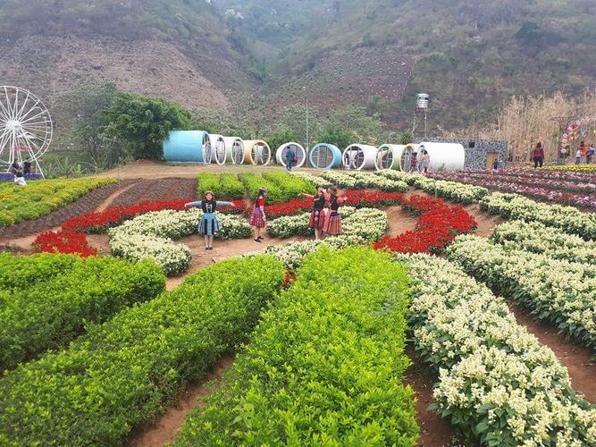 • 13h30: Tham quan KDL Mộc Châu Happy Land, trải nghiệm những trò chơi độc đáo; tham quan những cánh đồng hoa khoe sắc thắm quanh năm, nằm giữa thung lũng, xung quanh là cánh đồng hoa cải màu trắng xóa. Phía dưới là dòng suối Sập chảy từ nước bạn Lào. Tiếp tục hành trình tham quan thác Dải Yếm hay còn gọi là thác Nàng, thác Bản Vặt, nhằm ví vẻ đẹp của thác nước như xuân sắc của người con gái tuổi trăng tròn. Dưới chân thác là cả một khoảng rộng mênh mông nước và vô vàn những mô đá nhấp nhô dọc theo bờ suối còn có rất nhiều những tảng đá bằng phẳng, những thảm thực vật xanh mướt, những cây cổ thụ to hơn một người ôm và các cây dây leo mọc đan xen nhau thành từng tầng hoà quyện vào dòng chảy. Sau đó lên xe về Bản Lác nhận phòng nhà sàn.
