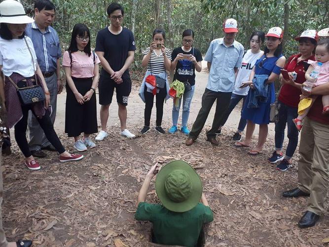 • 08h00: Tham quan địa đạo Củ Chi - địa đạo được Mặt trận Dân tộc Giải phóng miền Nam Việt Nam đào trong thời kỳ Chiến tranh Đông Dương và Chiến tranh Việt Nam. Hệ thống địa đạo dài khoảng 200 km và có các hệ thống thông hơi vào các vị trí các bụi cây; bao gồm bệnh xá, nhiều phòng ở, nhà bếp, kho chứa, phòng làm việc, hệ thống đường ngầm dưới lòng đất. Quý khách sẽ được tìm hiểu cách du kích VN xưa đã xây dựng, sinh sống và chiến đấu ở địa đạo, được xem những thước phim tài liệu quý báu về chiến tranh, về cách mà quân dân VN đã chiến thắng vũ khí hiện đại tân tiến chỉ với ý chí dân tộc. Ngoài ra Qúy khách sau khi tham quan còn được thưởng thức món ăn đặc sản “Khoai mì Củ Chi”, 1 món ăn đã tồn tại suốt trong thời kỳ gian nan kháng chiến của dân tộc Việt Nam anh hùng. Được tận mắt chứng kiến những vũ khí thô sơ tự chế, bẫy chông bằng tre..., bò trườn trong các đường địa đạo, và xem người dân địa phương làm bánh tráng và rượu gạo. Quý khách còn có cơ hội bắn súng tại trường tập bắn ở địa đạo.